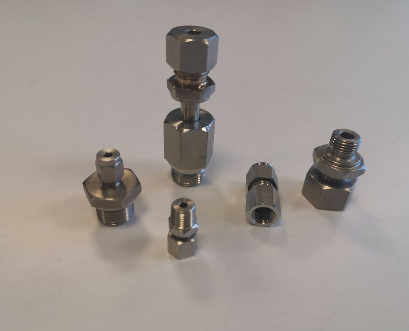 - Klemfitting/knelfitting zoals 1/2 "BSP(T) /NPT of 1/4", 1/8", 3/8", 3/4" etc. maar ook metrische maten zoals M12, M8, M5 etc.