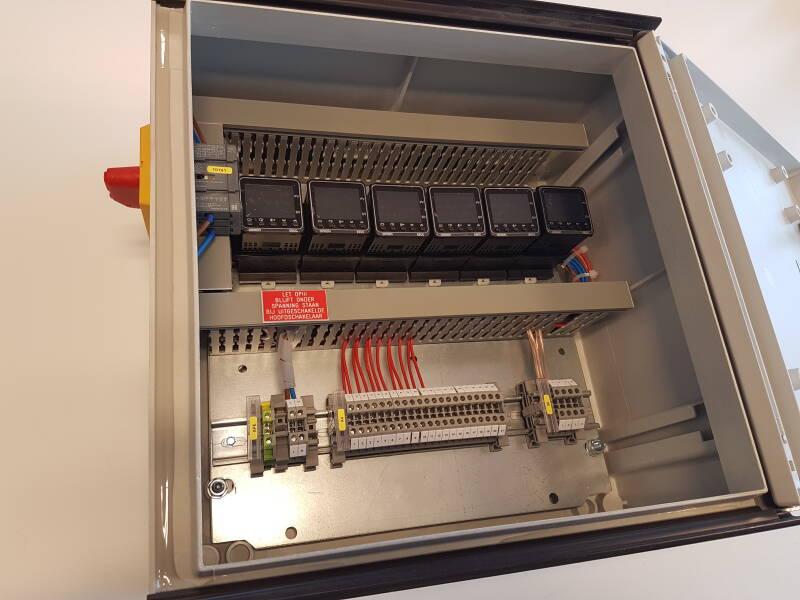 Aansluitkast met temperatuur regelaars naar wens en compleet bedraad en daarbij uiteraard ook de sensoren.